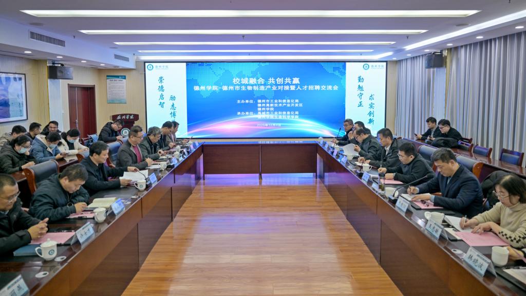 为贯彻落实生物制造产业高质量发展,深化政校企深度融合,助力现代生物技术产业学院建设,12月4日,德州学院——德州市生物制造产业对接暨人才招聘交流会在德州学院成功举办。德州学院党委委员、副校长李甲亮,德州市工信局党组成员、副局长于吉江,德州高新区党工委委员、管委会副主任安杨出席会议并讲话。